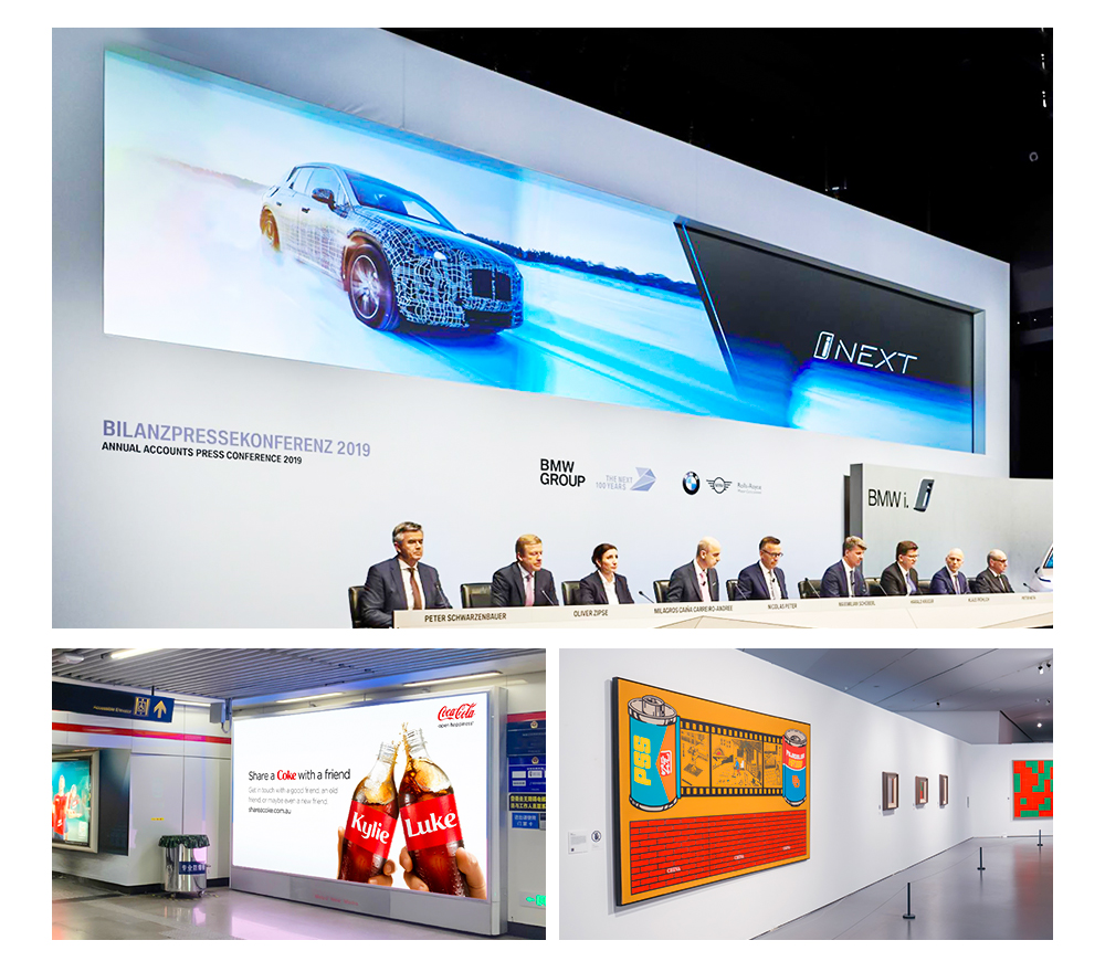- The box body is installed on the wall, which is widely used in commercial display, indoor fixed advertising, auditorium, conference room, banquet, front hall, exhibition demonstration, transportation, studio, command and monitoring.